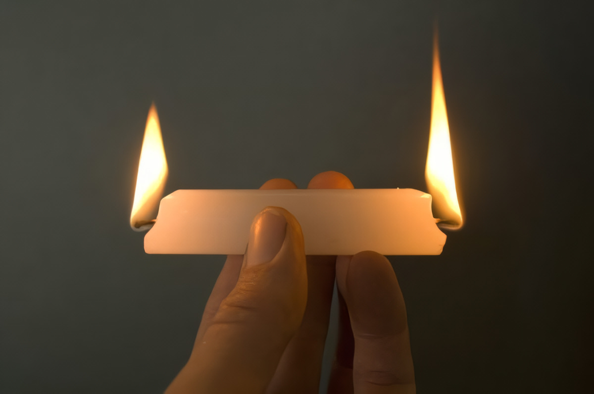 μ΄ ννμ μ λλ 17μΈκΈ° μκ΅ μμΈ Edmund Spenserμ μμμ λΉλ‘―λμμΌλ©°, “candle”μ λΉμ μ¬λλ€μκ² μμ€ν μμμΌλ‘, μμͺ½μμ λμμ νμ°λ©΄ κΈλ°© λ€ νλ²λ¦¬λ μλ―Έκ° λ΄κ²¨ μλ€. μ¦, κ³Όλνκ² μΌμ νκ±°λ μ¬λ¬ κ°μ§ μΌμ λμμ νμ¬ μ²΄λ ₯μ΄λ μ μ λ ₯μ΄ μμ§λλ μνλ₯Ό λ»νλ€.